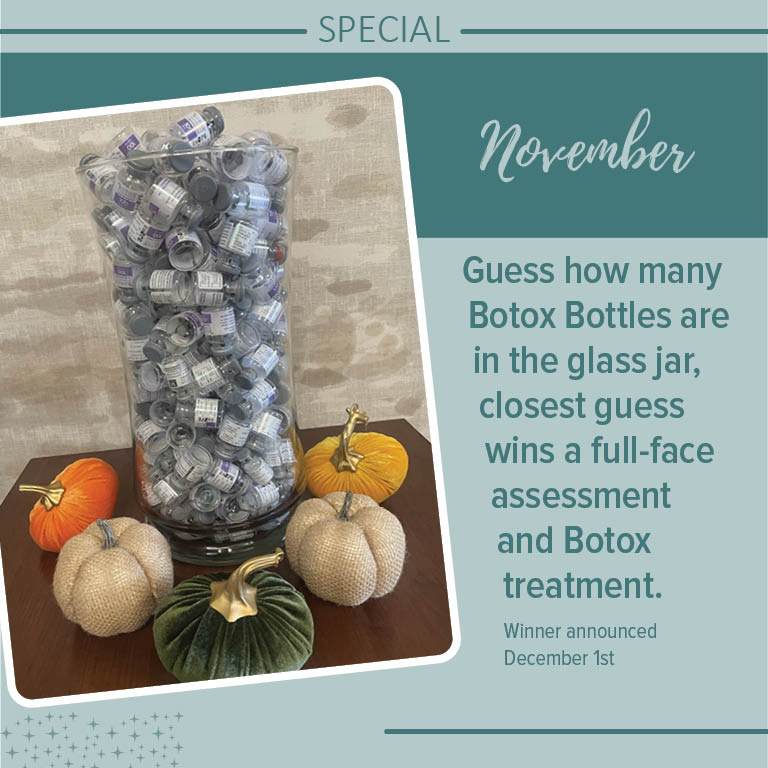 Guess how many Botox bottles for entry to win. Stop into Stellis Health Buffalo location or guess on Facebook. Closest guess wins a full-face assessment and Botox treatment.